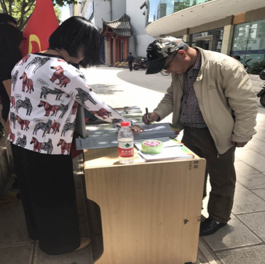 上圖為分發(fā)宣傳資料現(xiàn)場