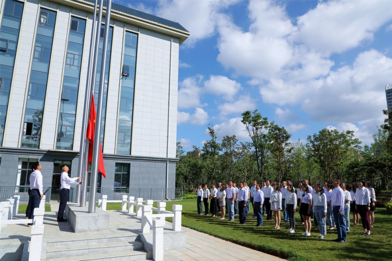 當(dāng)天上午9時(shí)許,活動(dòng)在牛欄江公司駐地拉開(kāi)序幕。在近30名黨員干部職工的目光中,3名著裝整齊、步伐矯健的青年升旗隊(duì)員護(hù)衛(wèi)鮮艷的五星紅旗登上升旗臺(tái)。隨著雄壯激昂的《義勇軍進(jìn)行曲》響起,五星紅旗冉冉上升、迎風(fēng)舞動(dòng),成為晨空下最絢爛的一道色彩。大家高唱國(guó)歌、行注目禮,目送國(guó)旗升至桿頂。